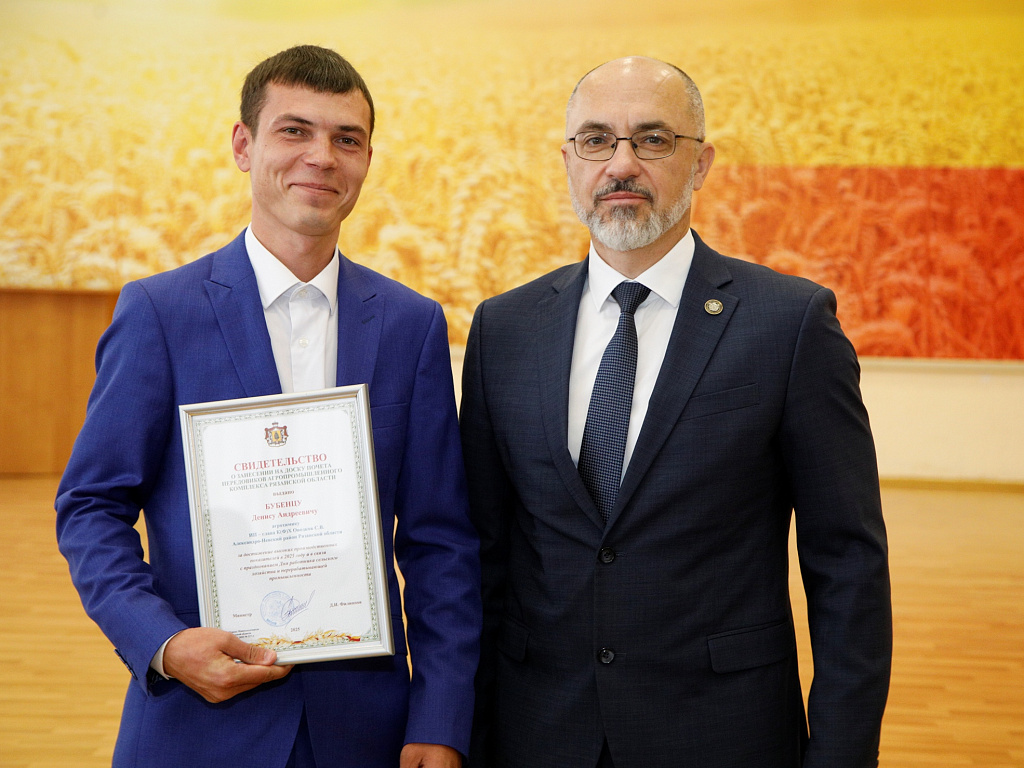 Свидетельства о занесении на Доску Почёта и награды передовикам вручил министр сельского хозяйства и продовольствия Рязанской области Дмитрий Филиппов.